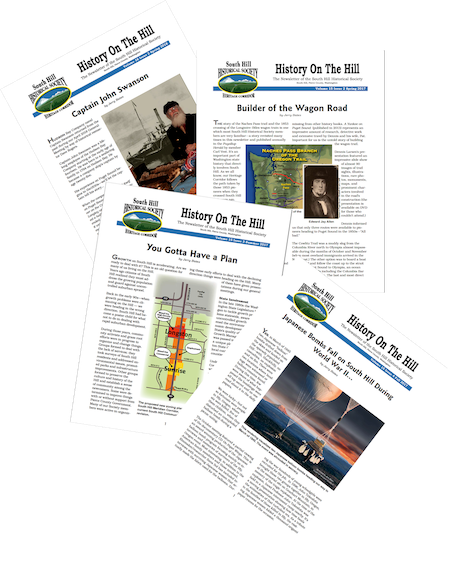 For over twenty years the South Hill Historical Society published articles uncovering a fascinating story of the people, events and periods of South Hill’s past. This site contains, in addition to other info., that history as told in the History on the Hill newsletter and the Puyallup Herald series of articles.