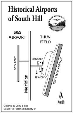Why is it called Thun Field? Because the airport, where it is now located, was developed by a local man, John Thun, during the 1950s and 1960s. But he did not originate this landing field nor was it the first aviation facility on South Hill.